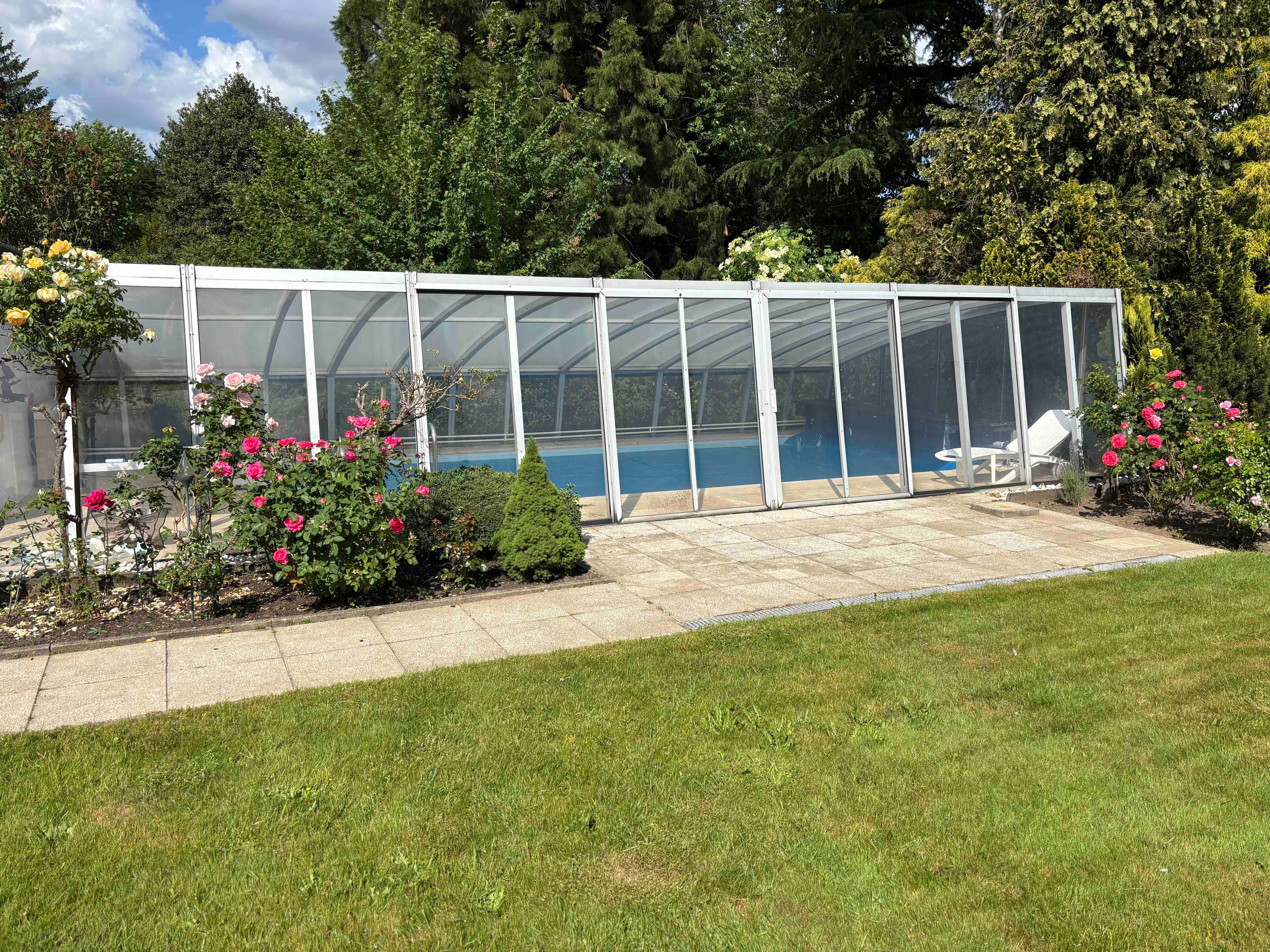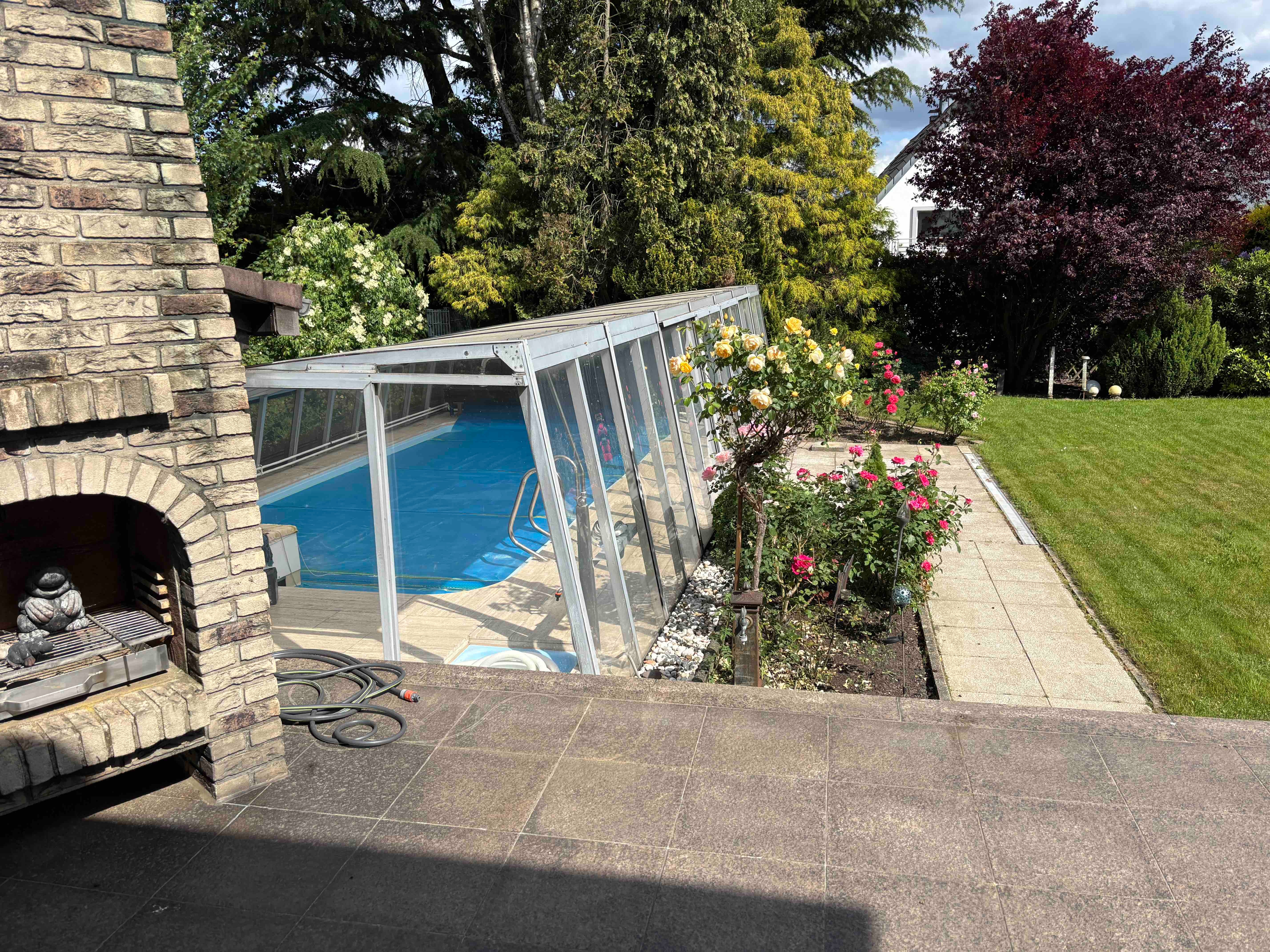 Ein beeindruckender Swimmingpool im Außenbereich (der technisch überarbeitet werden muß) rundet das luxuriöse Angebot perfekt ab und lädt zu erfrischenden Schwimmrunden ein. Diese umfangreiche Ausstattung macht das Anwesen zu einem Ort des Luxus und der Entspannung.